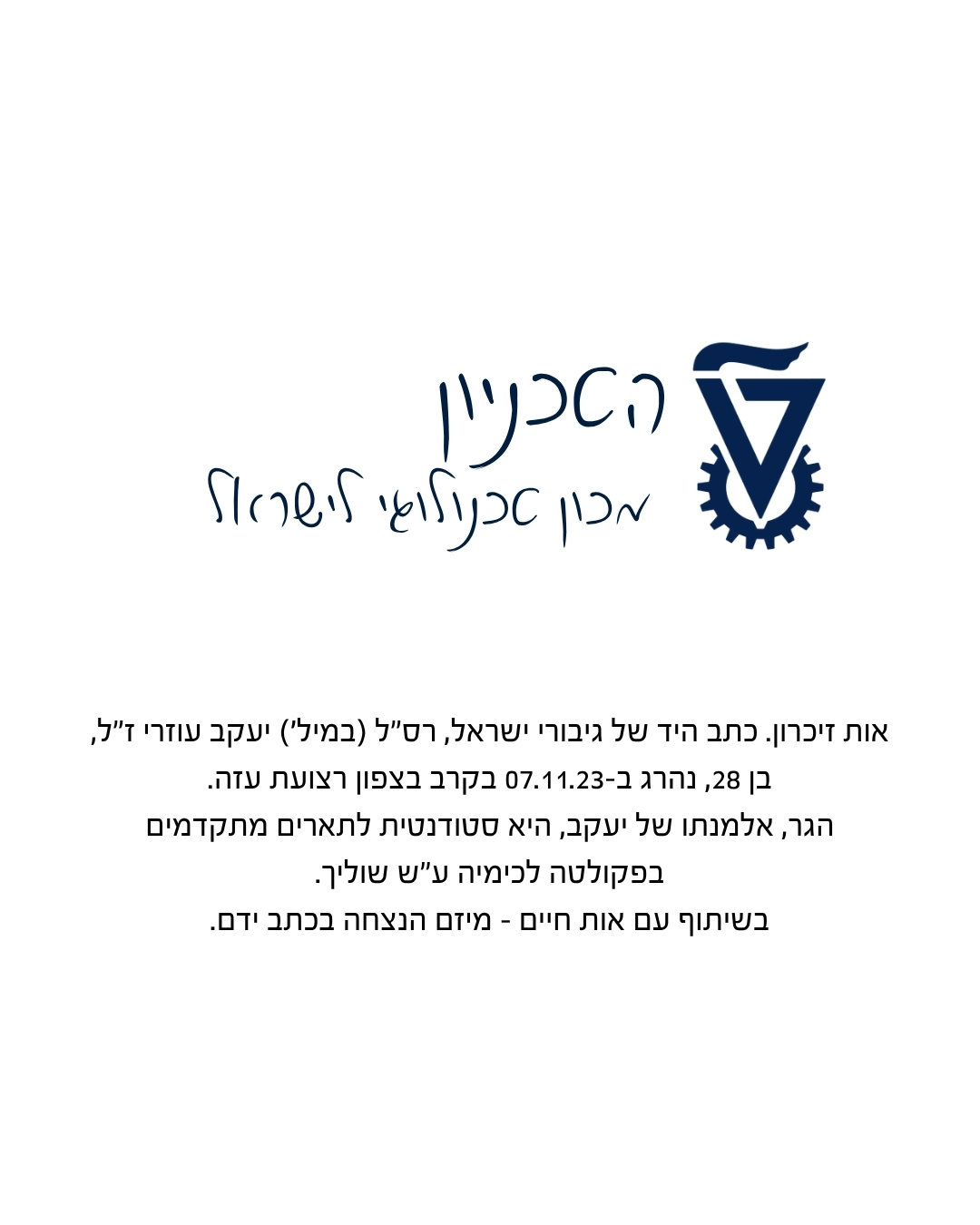 היום החלפנו ברשתות החברתיות את הגופן לכתב היד של גיבור ישראל, רס”ל (במיל’) יעקב עוזרי ז”ל, היה בן 28 בנופלו בקרב בצפון רצועת עזה ב־07.11.23.