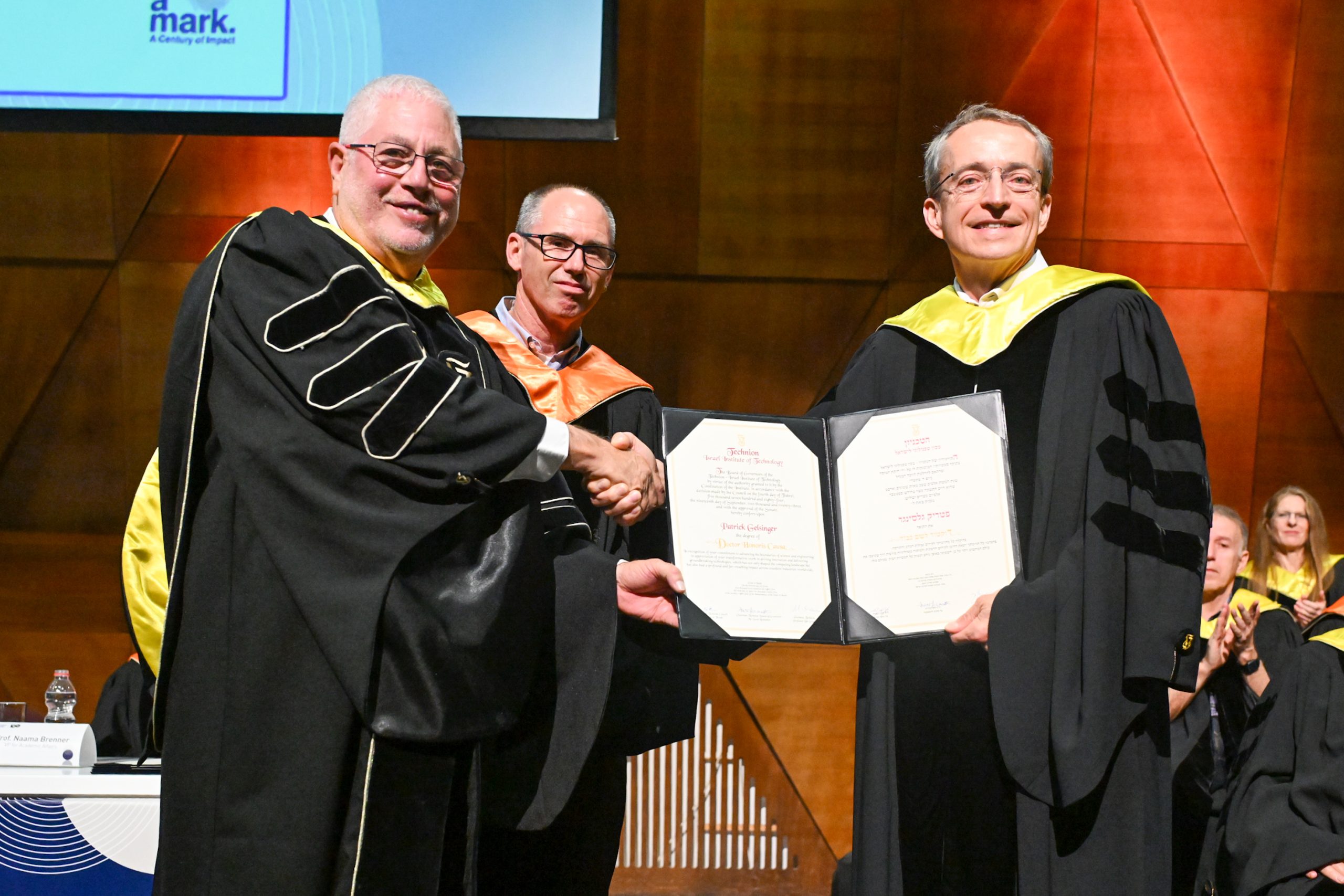 Honorary doctorates were awarded by the Technion yesterday (Tuesday, June 9) to the following individuals: Patrick Gelsinger, Rafik Halabi, Marc Hamon, Justice Esther Hayut, Prof. Maurice Herlihy, and Bennett Rechler.