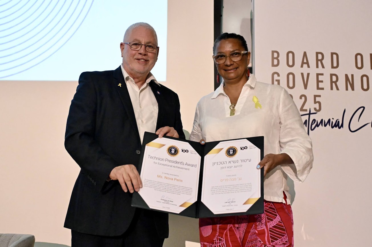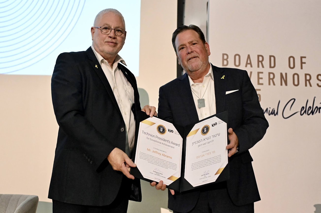 Abrams, Ahmed, Peris, and Cramer received the Technion President’s Award for Exceptional Achievement “in recognition of their dedication to combating antisemitism and defending the State of Israel, particularly in the wake of the events of October 7, 2023; in acknowledgement of their commitment to truth, justice, and the Jewish people, both within academia and beyond; in appreciation of their courage, advocacy, and leadership, which have stood against hatred, misinformation, and hostility, ensuring that Israel’s voice is heard and that the dignity of the Jewish people is upheld.”